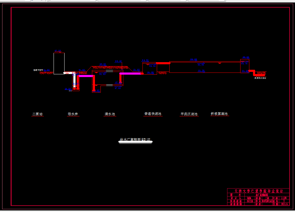 关键词:折板絮凝池;平流沉淀池;普通快滤池;消毒;清水池;二泵站