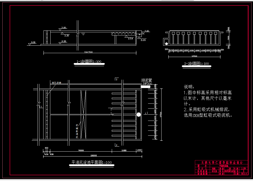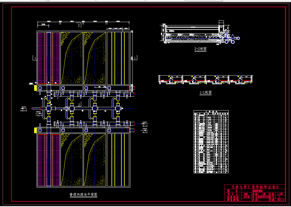 根据确定的净水厂位置,选择适宜采用的处理构筑物,确定设计采用的处理构筑物的形式及数量;进行各构筑物的设计计算,确定各构筑物和各主要构件的尺寸并绘制部分计算简图,设计时要考虑到构筑物及其构件施工上的可能性,并符合要求。