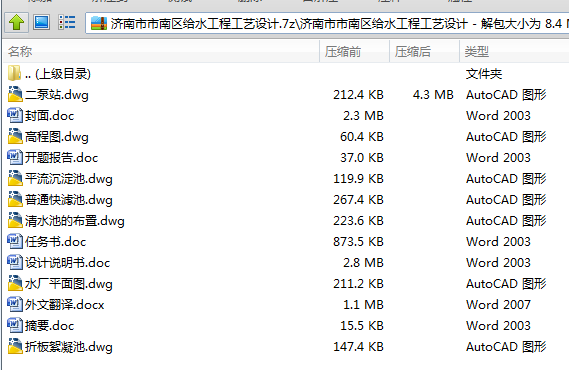 本设计为济南市市南区给水工程工艺设计。设计的主要内容有:原始资料概述、水量水压确定、净水厂工艺设计及设计计算,最终的设计规模为7万m3/d。