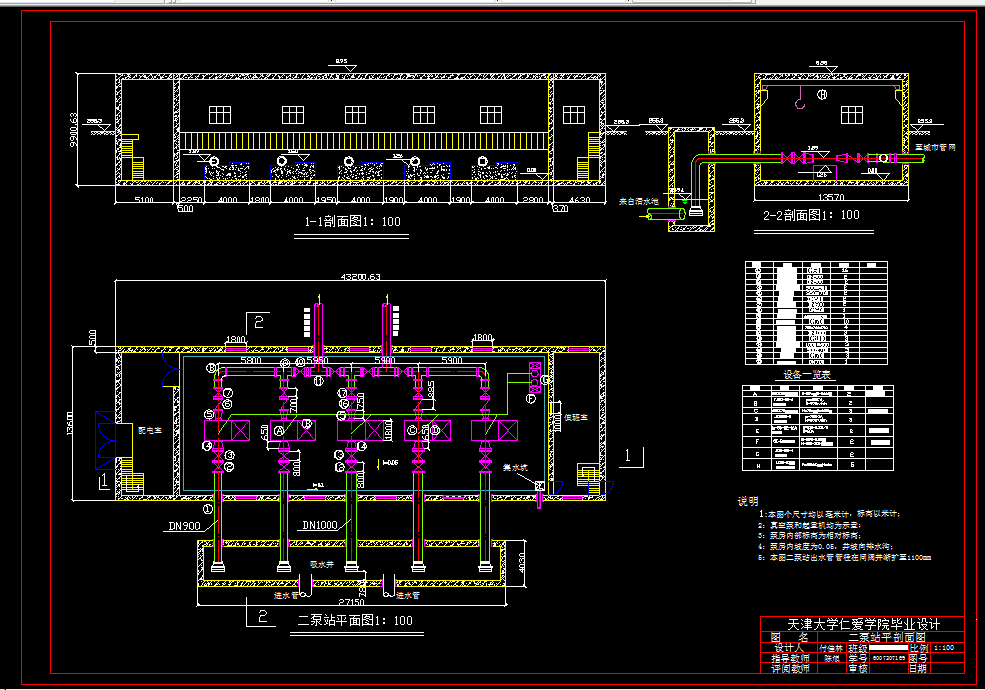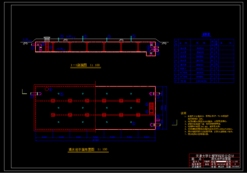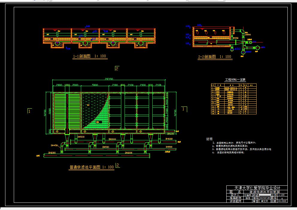 整个设计包括二大部分: 净水厂的设计计算和供水泵站的设计。