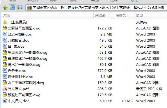 本设计为芜湖市某区给水工程工艺设计,工程设计规模为75000m³/d。