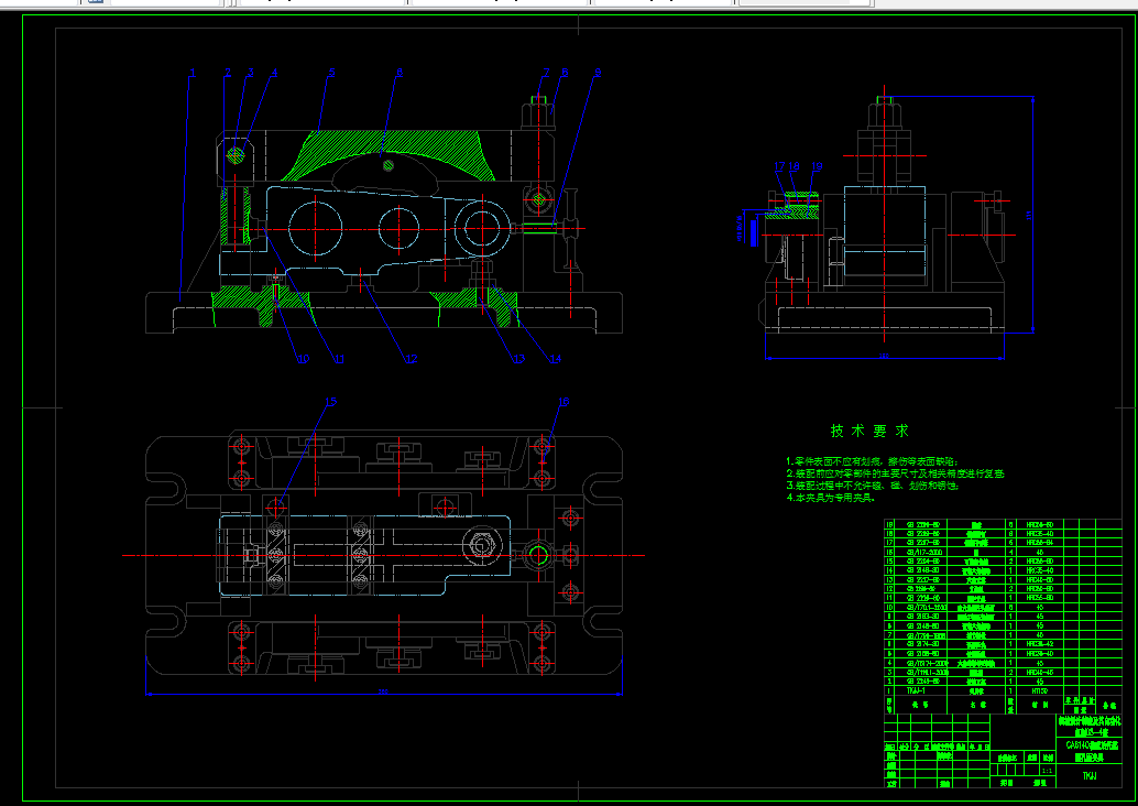 括相关工序专用夹具的装配图以及主要零部件图等,其中1张图必须徒手画,图纸合计2~2.5张零号图纸。