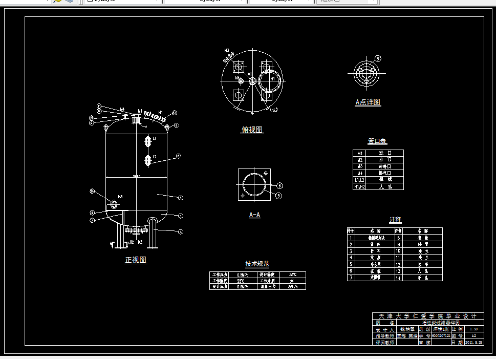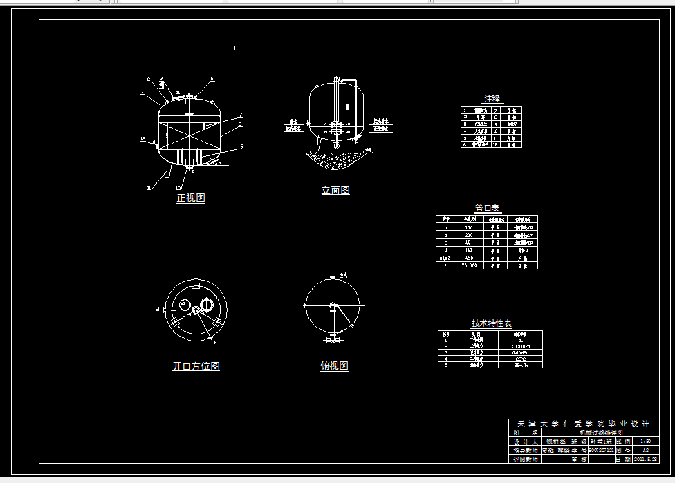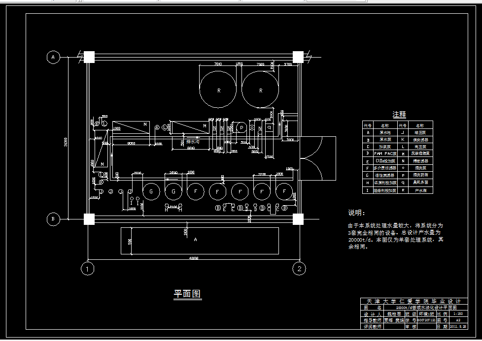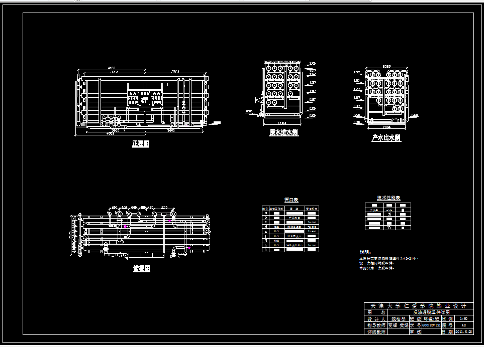 本文简要的介绍了我国水资源的现状,说明了苦咸水淡化的意义和应用价值;概括了苦咸水淡化的主要方法:蒸馏法、膜法、电渗析法;分析了反渗透法在水处理领域的基本原理及特点;论证了反渗透苦咸水淡化处理的技术经济可靠性和可行性;讲述了反渗透法的国内外发展研究、应用现状及最新进展和趋势;主要论述了利用反渗透法淡化苦咸水的原理、方法、要求及设计说明,进行反渗透苦咸水淡化处理的工艺设计计算,包括预处理系统、反渗透系统和后处理系统,并进行经济技术分析;用CAD绘制了平面布置图、处理工艺流程图、反渗透膜组件详图、机械过滤器详图、活性炭过滤器详图和滤器管道图等主体设备结构工程图作为设计附图;最后对苦咸水淡化的发展前景进行展望。