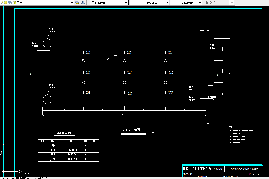 这次毕业设计,让我更加熟悉了给水工程设计的步骤、计算方法和相关技术规范,加强了我对给水工程设计计算、CAD绘图和设计计算说明书的编写能力。