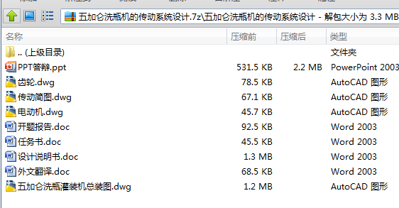 随着现代科学技术的发展,人民生活水平的提高,越来越多的的人开始饮用纯净水,相关纯净水的洗瓶机械需求量也越来越大,对于洗瓶机的技术要求也越来越严格,所以针对五加仑洗瓶机的研究是很有必要的.本说明书主要是对五加仑洗瓶机传动系统的设计和计算,工作原理是通过电机传递动力,然后通过固定在主根轴上的一对齿轮之间的啮合和大小齿轮间不同的传动和链传动带动洗瓶输送链的运动。首先气缸和电动机进行比较,阐述选择气缸的好处;其次对各级传动比的进行计算和合理的分配;再次对齿轮和轴的材料进行选择和设计,还对其进行材料进行了强度校核,并且根据所得数据绘制出装配图和零件图,对附件(键和链)进行材料选择和设计;最后对整个设计进行检查核对,总结这次设计的收获与体会。