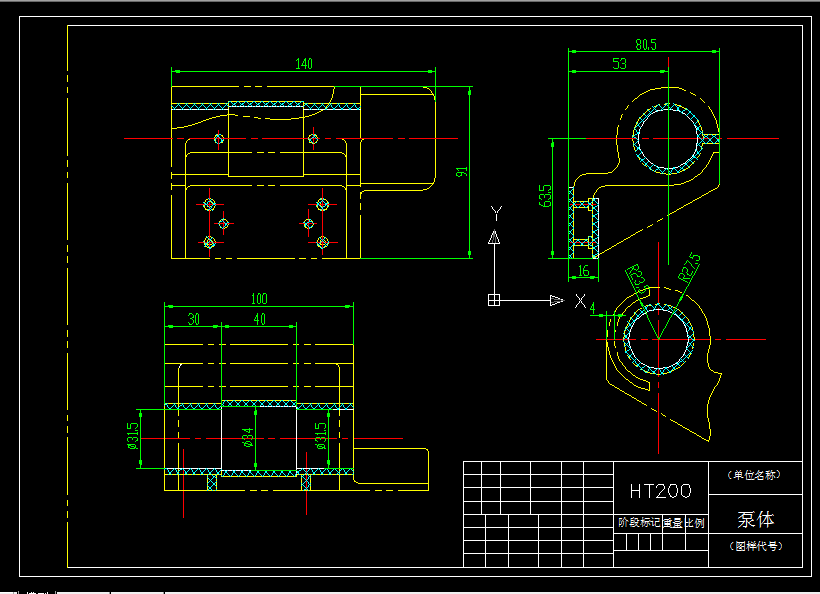 泵体零件的工艺规程及钻攻2-M10的工装夹具设计是包括零件加工的工艺设计、工序设计以及专用夹具的设计三部分。在工艺设计中要首先对零件进行分析,了解零件的工艺再设计出毛坯的结构,并选择好零件的加工基准,设计出零件的工艺路线;接着对零件各个工步的工序进行尺寸计算,关键是决定出各个工序的工艺装备及切削用量;然后进行专用夹具的设计,选择设计出夹具的各个组成部件,如定位元件、夹紧元件、引导元件、夹具体与机床的连接部件以及其它部件;计算出夹具定位时产生的定位误差,分析夹具结构的合理性与不足之处,并在以后设计中注意改进。