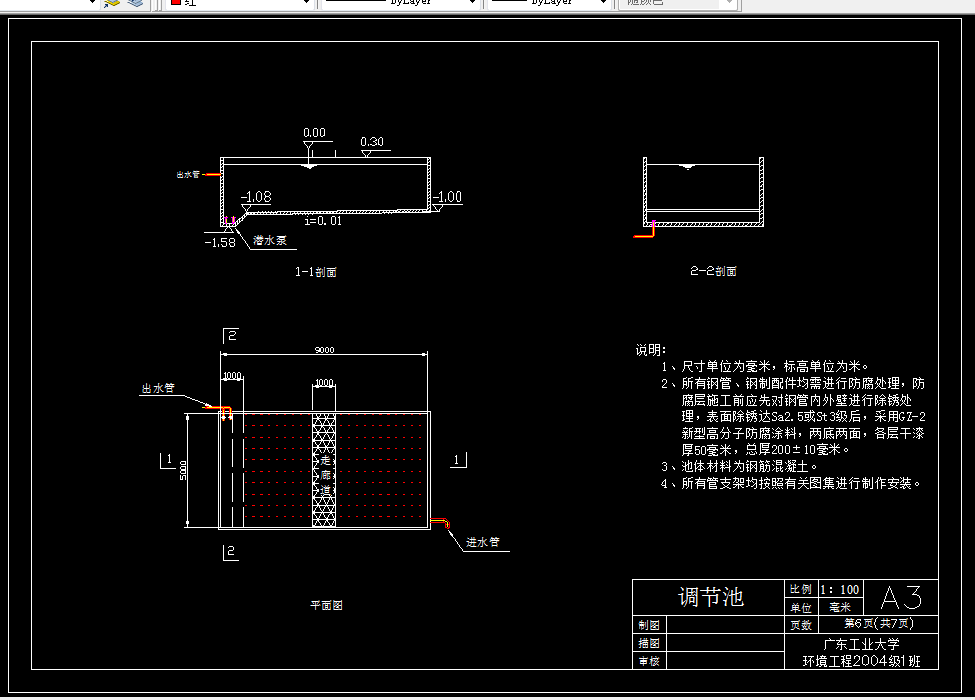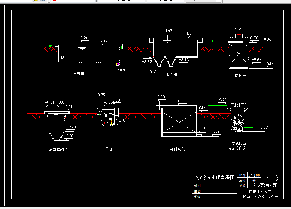 我的设计处理量为150吨每天。设计时严格遵从以下原则。严格执行国家有关环境保护的各项法规;采用先进、成熟、合理、可靠、节能的工艺,确保处理量及水质排放达到标准。对于工艺中所采用的设备要求工况稳定,能耗低,完全能满足生产要求;在整体改造思路中尽量使全套污水处理系统自动化水平最大化;流程布局合理,整体感强,外观装饰美观大方,环境绿化优美;在上述前题下,做到投资少,运行费用低。