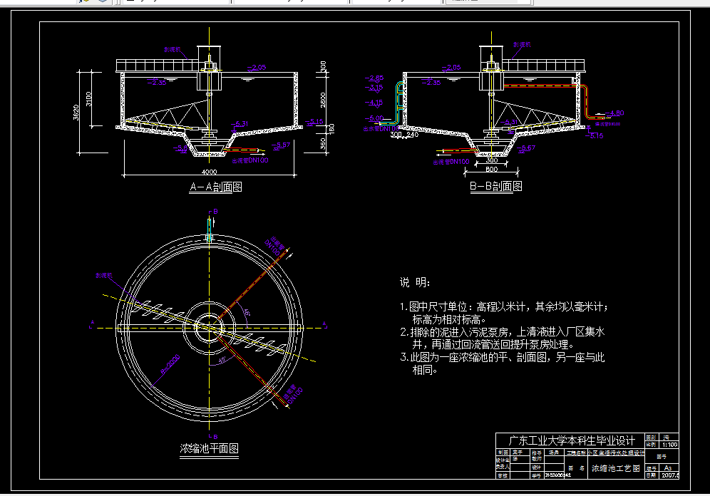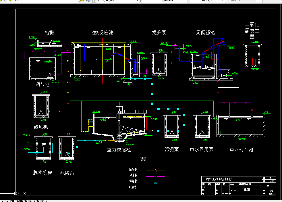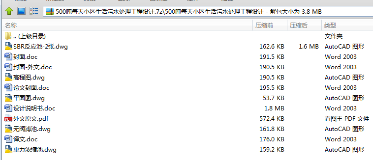本设计要求处理水量为500t/d的小区生活污水(以居住小区为背景),设计方案采用序批式间歇活性污泥法。SBR是序列间歇式活性污泥法(Sequencing Batch Reactor Activated Sludge Process)的简称,是一种按间歇曝气方式来运行的活性污泥污水处理技术,又称序批式活性污泥法。SBR的技术关键是运行周期T的控制,采用时间分割的操作方式替代空间分割的操作方式,非稳定生化反应替代稳态生化反应,静置理想沉淀替代传统的动态沉淀。它的主要特征是在运行上的有序和间歇操作,SBR技术的核心是SBR反应池,该池集均化、初沉、生物降解、二沉池等功能于一池,无污泥回流系统。