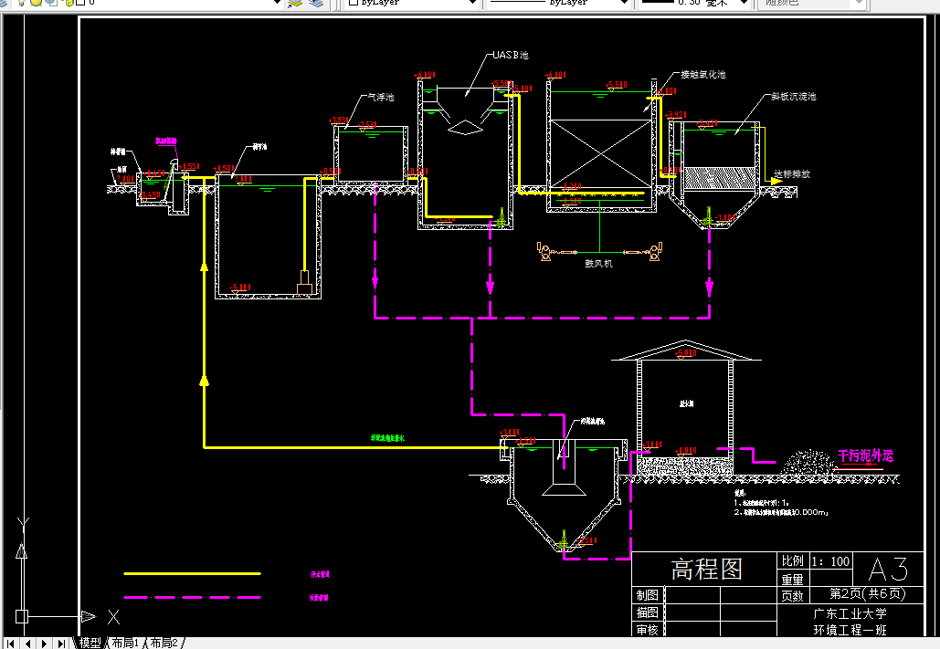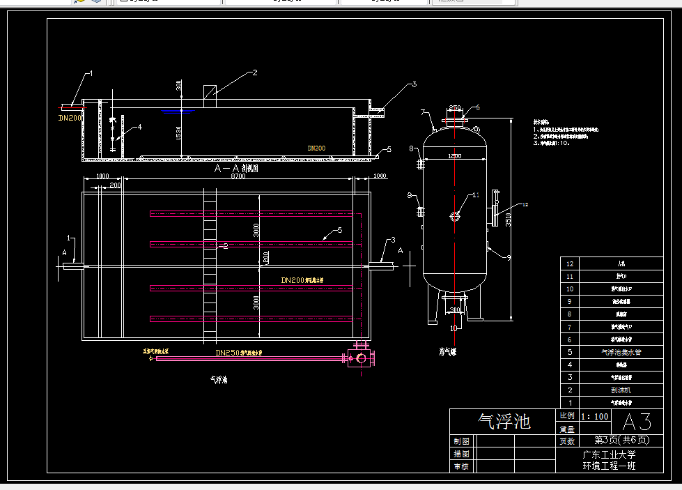 本设计为3000m3/d的造纸废水的工程设计。根据该造纸废水的水质特点和水量,参考造纸废水处理的经验资料,采用较新的DAF气浮法—UASB—生物接触氧化工艺,并进行经济、技术及环境效益的对比。