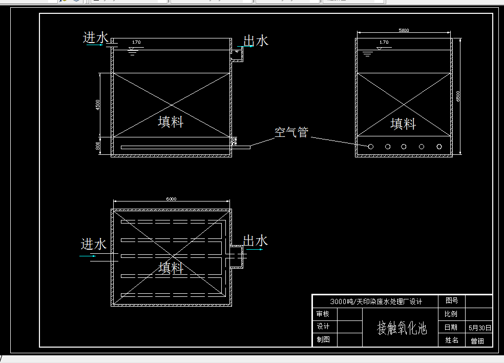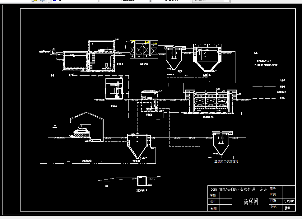 本毕业设计主要是用混凝沉淀和生物接触氧化法来处理排放出来的印染废水,该废水的处理条件是设计日排放量为3000m3/d。