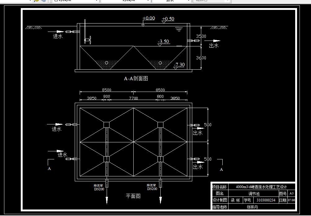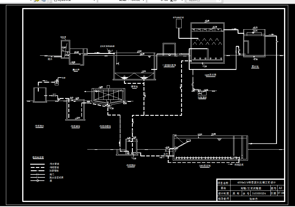 由于啤酒废水含有大量的有机物,具有很好的可生化性,因而适合以生物处理为主的处理工理工艺。本例采取厌氧+好氧相结合的处理新工艺,将UASB反应器和CASS反应器结合起来对啤酒废水进行处理。UASB反应器是目前应用较为广泛的高速厌氧反应器,适合处理高浓度有机废水,具有构造简单、不易堵塞、耐冲击负荷、便于操作等优点。CASS是在好氧生物处理中常用的活性污泥法SBR工艺的基础上发展起来的,具有运行费用省、运行灵活、管理方便等优点。该工艺非常适合啤酒废水的处理,出水可达到《污水综合排放标准》(GB8978-96)一级排放标准和《水污染物排放限值》(DB 44/26—2001)。