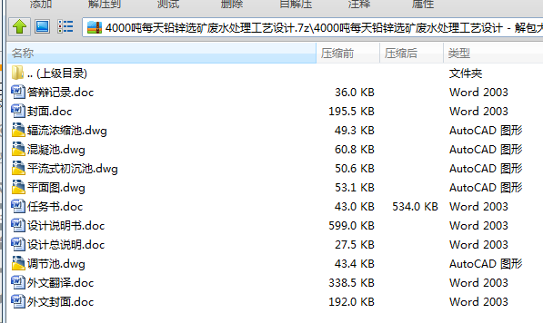 本次设计的课题是4000m3/d铅锌选矿废水处理。是属于选矿废水处理中的初步设计,主要是去除选矿废水中含有较多的金属悬浮颗粒物,相应的在选矿过程中所用到的一些浮选药剂(以去除COD或者是BOD的形式进行)。