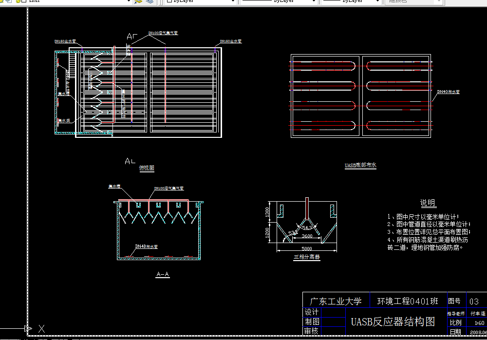 本设计为某啤酒厂啤酒废水处理工艺设计。啤酒废水水质的主要特点是含有大量的有机物,属高浓度有机废水,故其生化需氧量也较大。该啤酒废水处理厂的处理水量为5000 m3/d。原污水中各项指标为:BOD浓度为1200 mg/L,COD浓度为2000 mg/L,SS浓度为700 mg/L。因该废水BOD值和COD值较大,不经处理会对环境造成巨大污染,故要求处理后的排放水要严格达到国家二级排放标准,即:BOD≤20 mg/ L,COD≤100 mg/ L,SS≤70 mg/ L。