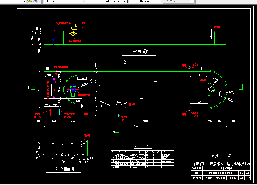 随着国内外水污染控制工作者的不断研究,现己开发出越来越多的处理新工艺和不同方式加以组合的再生利用处理工艺。本设计要求处理某制鞋厂2000吨/天的生产废水和生活污水,污水处理后回用。针对污水的水质,本设计采用卡鲁塞尔(Carrousel)2000型氧化沟工艺,不仅去除BOD、COD等有机污染物的效率高,而且还具备一定的脱氮除磷能力,对BOD、COD、N的去除率均达到95%。同时该工艺具有工艺流程简单、耐冲击负荷、运行费用低、污泥产量少等优点,大大降低了处理成本。污水回用的深度处理采用砂滤和臭氧消毒法。该砂滤池是一种不设闸阀的滤池;利用虹吸作用可以自动反冲洗,,而且不需真空设备控制,运行完全由水力自动控制,实现无动力运行。臭氧消毒法具有杀菌、杀灭病毒的效果好,消毒性能稳定,适应能力强,不产生持久性残余,无二次污染等特点。本工艺利用臭氧接触塔提高气液传质效率及消毒效果,臭氧投加量为3.5mg/L。经过处理后使出水达到CJ/T48-1999生活杂用水水质标准并回用。