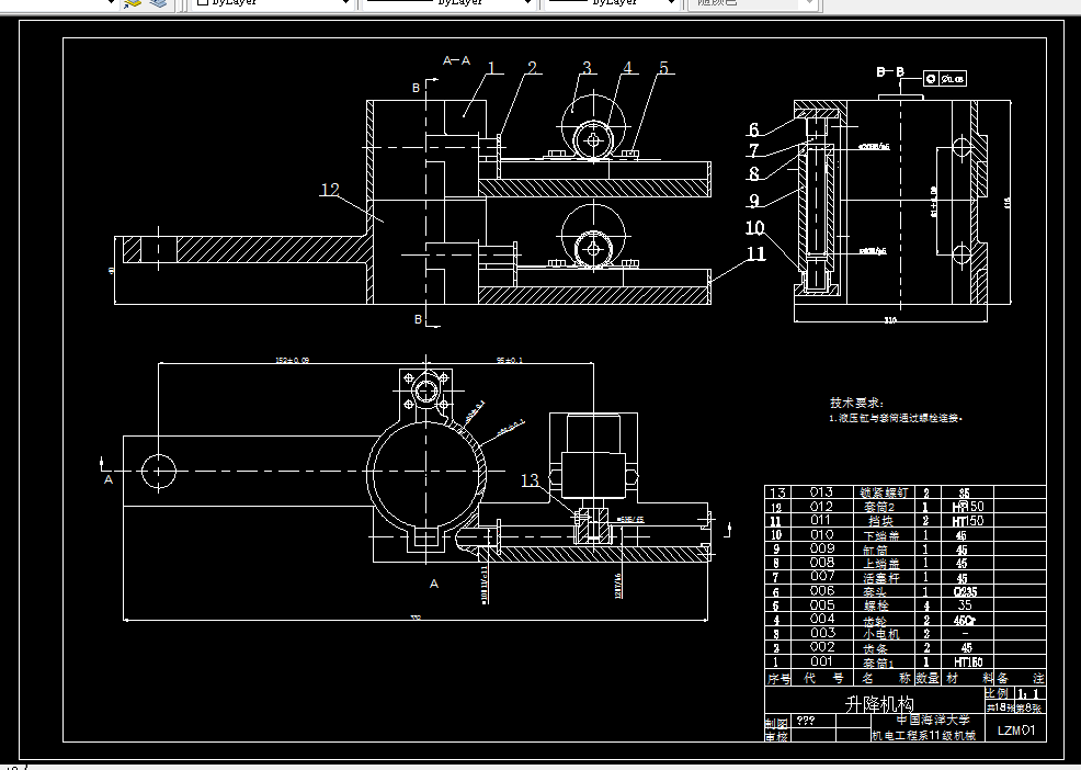 总体提出了海风、海浪、海流三层试验台工作的方案,确定了旋转机构和升降机构,校核了螺栓、键、悬臂梁和轴的强度,满足设计要求。