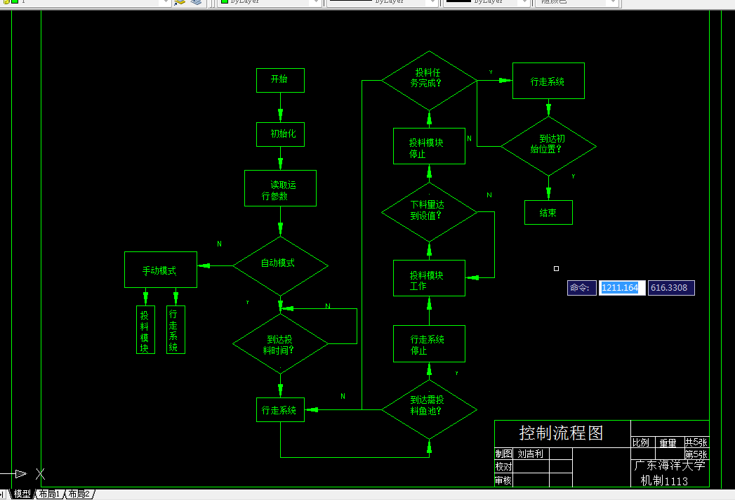 在工厂化水产养殖中,较多的成本往往在于人工成本和饲料成本,为了减少养殖过程中饲料的成本投入并降低人工劳动强度,提高生产效率。设计一种基于PLC控制的自动投料机制,该自动投饲系统能工作于高温高湿的水产养殖车间,能够排除相关养殖设备的干扰,实现对养殖车间的准确定位、精准的投饲以及对投饲的相关数据进行记录存储。自动投饲系统在工厂化水产养殖中能够稳定运行,其基本的运行参数为:运行速度:10至15/min,投饲精度95%以上,定位精度最大偏差为43mm。
