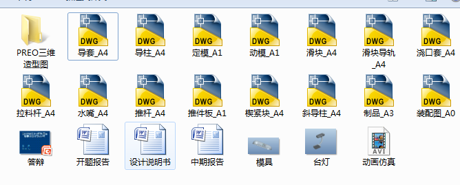 灯具所用的材料为ABS、模具结构为侧浇口形式且有一处侧向抽芯。设计分二个部分组成:第一是CAD/CAM在模具设计上的具体应用,运用三维设计软件Pro/e绘制实体造型图,生成二维图,然后借助于AUTOCAD绘制产品的零件图及装配图;第二是计算说明及成型工艺分析部分,包括模具结构设计、注塑机和模架的选用、浇注系统的设计、成型零件的设计、斜抽芯机构、脱模机构和冷却系统的设计。