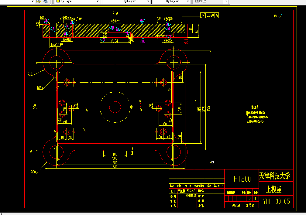 模具工业是国民经济的基础工业。模具是大批量生产同形产品的工具,是生产各种工业产品的重要工艺装备。冷冲压更是在实际生产中占有绝对重要的地位。本设计说明书是冲裁加弯曲的多工位级进模的具体设计过程,其中包括最初的对制件进行工艺分析,对冲裁件的外形分析,冲裁过程的合理性以及弯曲回弹的分析,再对工艺方案进行比较和最终的选择,然后再对模具的工艺进行一些必要的计算和对模具主要零部件的选择以及校核,最后选择合适的模架和压力机。因为级进模一般是要大批量生产的,所以又考虑了模具的定位问题,包括用侧刃粗定距,用导正销进行精定位。因为制件弯曲步骤较多,所以模具的各部分零件较复杂。