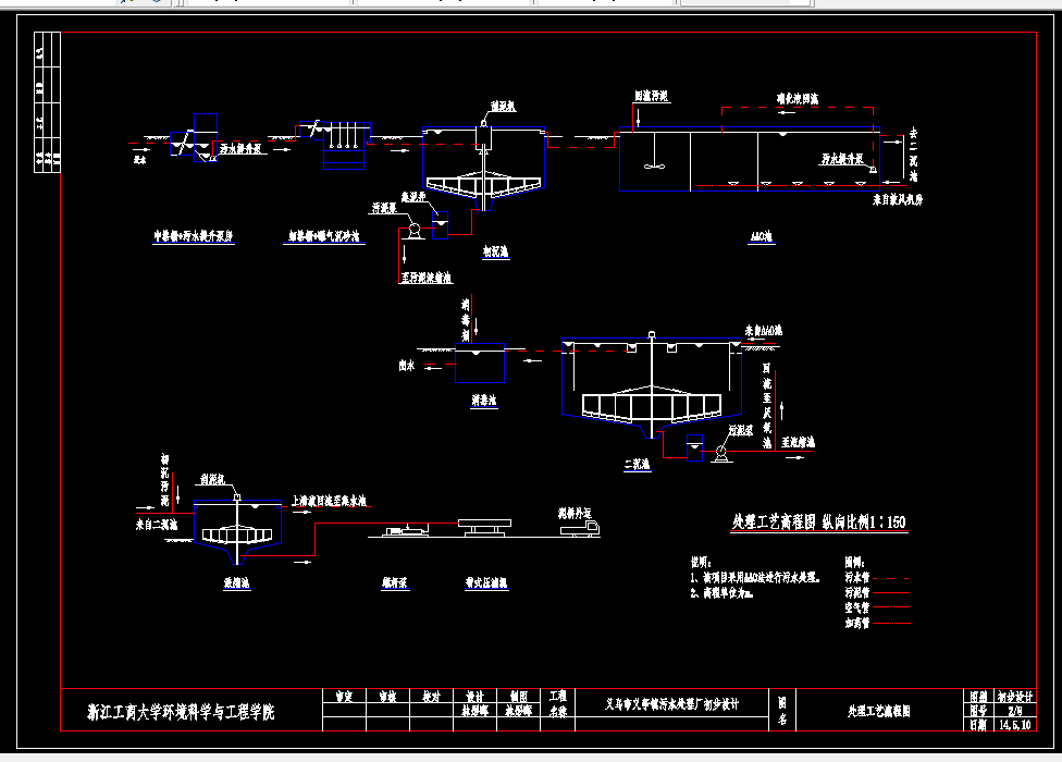 关键词:城镇污水;氮;磷;A2/O;工艺设计