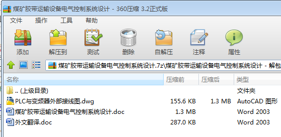 本次设计题目是煤矿胶带运输设备的电气控制系统设计。因此,设计方案以主斜井胶带输送机为背景,通过对胶带型号、胶带输送机型号的确定,隔爆型三相异步电动机的确定,变频器选型和PLC软件、硬件的设计,进行胶带输送机的电气化控制,最终实现机械化流程作业。