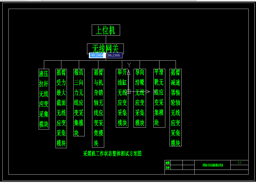 由于采煤机工作的环境和工作地点的特殊性和复杂性,使采煤机的参数测量与其他大型机械有很大差别现在有很多针对采煤机的各种设计,采煤机各个工作节点的工作参数和受力对于采煤工作的正常有序的进行起着至关重要的作用,因此对于采煤机关键节点工作参数和应力的测试很有意义,本次设计是采煤机实验测试数据采集系统的设计,是针对西安煤机厂制造的MG500/1130型采煤机工作时候主要工作节点的应力测试系统的设计,通过在各个重要工作节点安置不同种类的传感器来实现采煤机重要节点工作参数的信息测量,考虑到传感器以及相关测试仪器的强度问题所有信号采用应变输出,将传感器接入无线应变采集模块进行数据的采集,再通过无线传输方式将信息传输至屏幕进行显示和分析。采煤机主要工作节点应力的准确测试能保证采煤机正常有序工作以及工作人员的安全,提高生产效率。