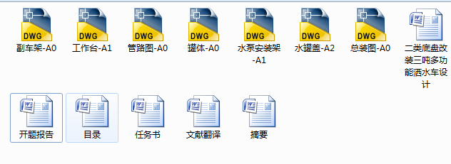 本文主要介绍洒水车的设计,本文主线是通过要求罐体的容积,然后根据罐体的容积选择二类底盘,然后选择发动机,然后根据二类底盘的变速箱选择取力器,根据洒水车功能要求及中华人民共和国汽车标准的规定选择水泵,然后进行罐体的设计,整车管路的设计, 专用装置操作的控制,管路球阀的选择,喷组口的设计,水炮的选择,然后进行工作台的设计,水泵安装架的设计,然后进行整车设计的校核。本文主要是进行三顿洒水车的设计,实际是介绍洒水车的一般设计步骤及方法,目的是为了锻炼自己的设计能力,将来在社会工作中更能得心应手。