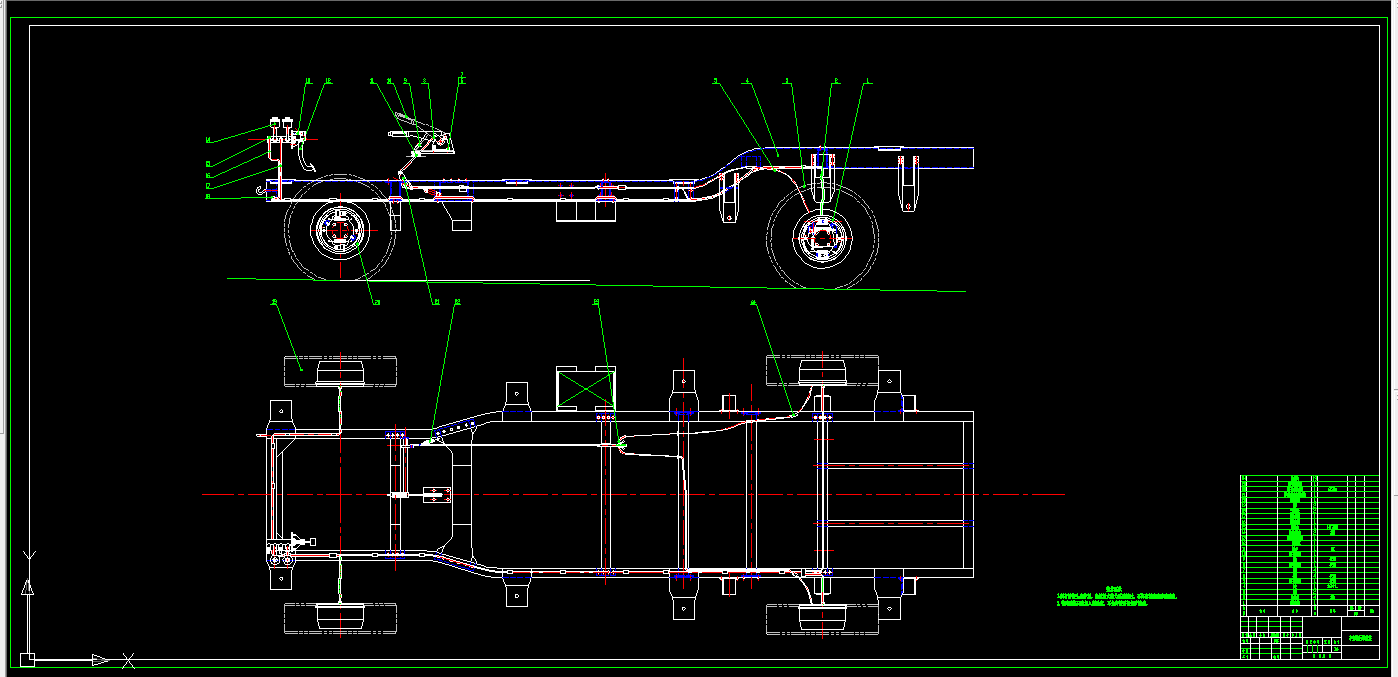 这次我的毕业设计题目是皮卡车架、制动系设计)。在第二章我主要介绍了制动系的概况和设计时应满足的基本要求。第三章主要是制动系的类型及最后确定的方案,其中列出了几种可供选择的类型并进行了分析、比较最后确定的方案如下:行车制动器:前鼓后鼓,前鼓式制动器为双领蹄式制动器,后鼓式制动器为领从蹄式制动器。第五章主要介绍了制动系主要结构参数的选择并进行了简单的计算,是本设计说明书的核心部分,其中包括鼓式制动器主要结构参数的选择,例如:制动鼓内径、摩擦衬片宽度和包角、摩擦衬片起始角,同时对制动力和制动力矩分配系数进行了计算。第四章主要对驻车制动和应急制动进行了简单的计算。第五章介绍的是制动器主要零件的结构设计,如制动鼓、制动蹄、制动底板和制动轮缸等。第七章包括制动驱动机构的选择和计算,制动管路的分路系统和液压驱动机构的设计和计算。第八章列出了车架的几种类型,分析比较之后,最后确定选用前窄后宽的边梁式车架,并且在这一章中对车架的弯曲强度进行了计算,对车架的刚度进行了校核。