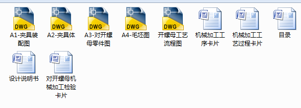 对开螺母加工工艺规程及夹具设计是包括零件加工的工艺设计、工序设计以及专用夹具的设计三部分。在工艺设计中要首先对零件进行分析,了解零件的工艺再设计出毛坯的结构,并选择好零件的加工基准,设计出零件的工艺路线;接着对零件各个工步的工序进行尺寸计算,关键是决定出各个工序的工艺装备及切削用量;然后进行专用夹具的设计,选择设计出夹具的各个组成部件,如定位元件、夹紧元件、引导元件、夹具体与机床的连接部件以及其它部件;计算出夹具定位时产生的定位误差,分析夹具结构的合理性与不足之处,并在以后设计中注意改进。