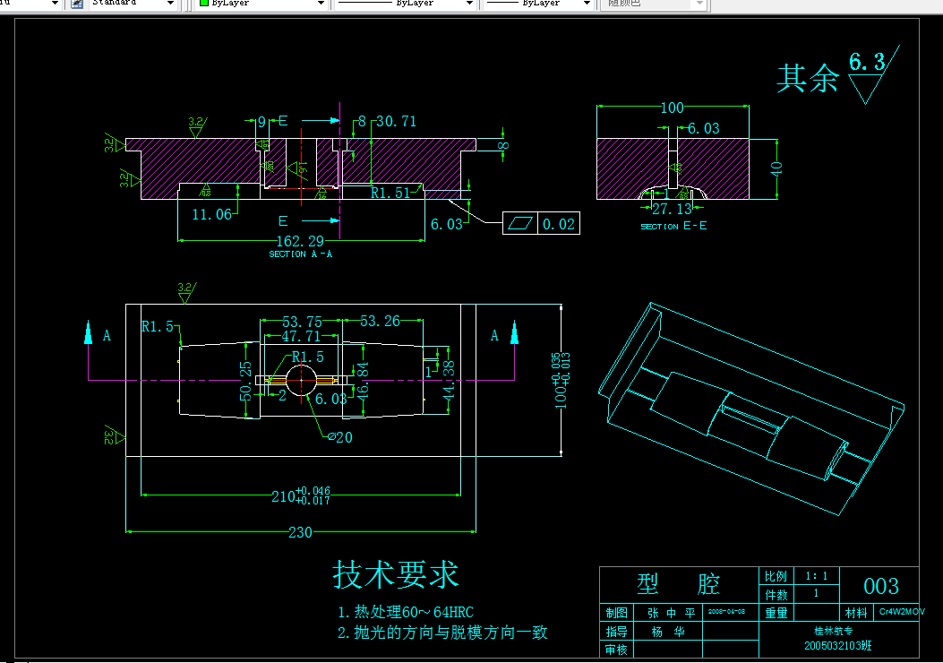 中文摘要: 注射成型是热塑性塑料成型的主要方法之一,可以一次成型形状复杂的精密塑件。手机业的快速发展要求手机外壳快速更新。本设计进行了一款手机电池后盖的注塑模设计,对零件结构进行了工艺分析。确定了分型面、浇注系统等,选择了注射机,计算了成型零部件的尺寸。采用侧浇口。利用推杆顶料及内抽芯方式并对模具的材料进行了选择。如此设计出的结构可确保模具工作运用可靠。最后对模具结构与注射机的匹配进行了校核。并用autoCAD绘制了一套模具装配图和零件图。