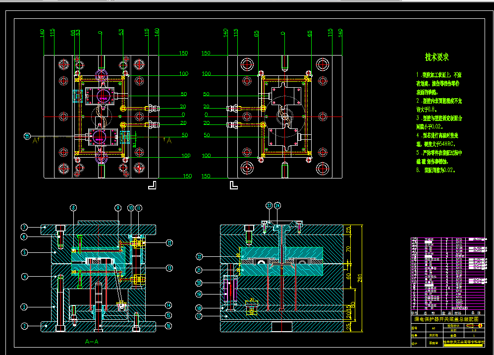 为了提高自己的综合能力,掌握现代设计方法,适应社会对人才的需要。本次毕计业设的题目是:漏电保护器开关底盖的塑件注射模。本次设计主要是通过对塑件的形状、尺寸及其精度的要求来进行注射成型工艺的可行性分析。塑件的成型工艺性主要包括塑件的壁厚,斜度和圆角以及是否有抽芯机构。通过以上的分析来确定模具分型面、型腔数目、浇口形式、位置大小;其中最重要的是确定型芯和型腔的结构,例如是采用整体式还是镶拼式,以及它们的定位和固紧方式。此外还分析了模具受力,脱模机构的设计,合模导向机构的设计,冷却系统的设计等。最后绘制完整的模具装配总图和主要的模具零件土及编制成型零部件的制造加工工艺过程卡片。通过本次毕业设计使我掌握中等复杂程度的塑料模具的设计,以及塑料制件的生产工艺。