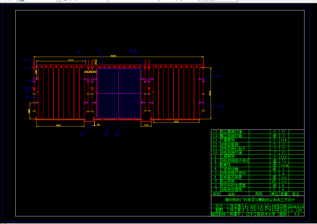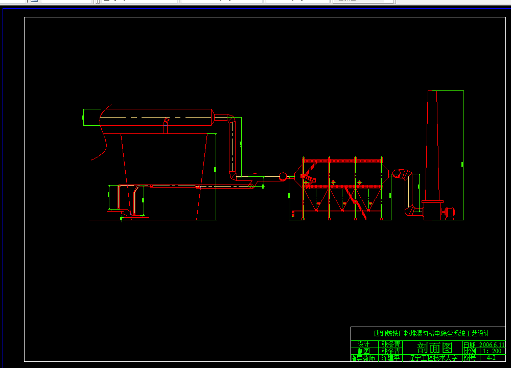 本设计在达到一定的除尘效率的前提下,根据料堆混匀槽粉尘的物理特性,考虑到要处理较大的烟气量,以及回收的粉尘能作为原料继续利用这些因素,对各种除尘设备做了比较,最终确定电除尘系统为最优方案。本设计对电除尘器的本体设计作了详细地说明,另外,管道系统的布置也是本设计的主要内容:根据各抽尘点的分布情况,对传送带采用平衡式系统布置,而对混匀槽则采用集合管。粉尘经设计的除尘系统,烟气浓度能从初始的5000mg/m3,降低到30 mg/m3,能够达到预定的排放要求,同时,粉尘的回收还使资源得到充分的利用,达到一定的经济效益,最重要的是使厂内的操作环境大大的改善,产生了良好的社会效益。