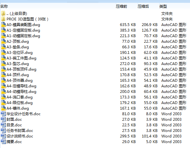 2、若题目上备注三维,则表示文件里包含三维源文件,由于三维组成零件数量较多,为保证预览截图的简洁性,本站将三维文件夹进行了打包。三维及CAD预览截图,均为本站电脑打开软件进行截图的,保证能够打开,下载原件超高清,下载后解压即可;