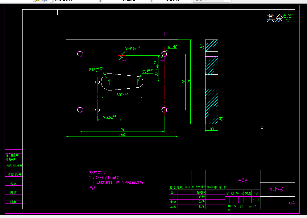 本设计是对给定的产品图进行冲压模具设计。冲压工艺的选择是经查阅相关资料和和对产品形状仔细分析的基础上进行的;冲压模具的选择是在综合考虑了经济性、零件的冲压工艺性以及复杂程度等诸多因素的基础上进行的;产品毛坯展开尺寸的计算是在方便建设又不影响模具成型的前提下简化为所熟悉的模型进行的。文中还对冲压成型零件和其它相关零件的选择原则及选择方法进行了说明,另外还介绍了几种产品形状的毛坯展开尺寸计算的方法和简化模型,以及冲压模具设计所需要使用的几种参考书籍的查阅方法。