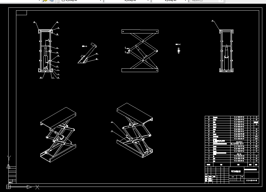 关键词: 三维设计; 剪式; 汽车举升机; SolidWorks