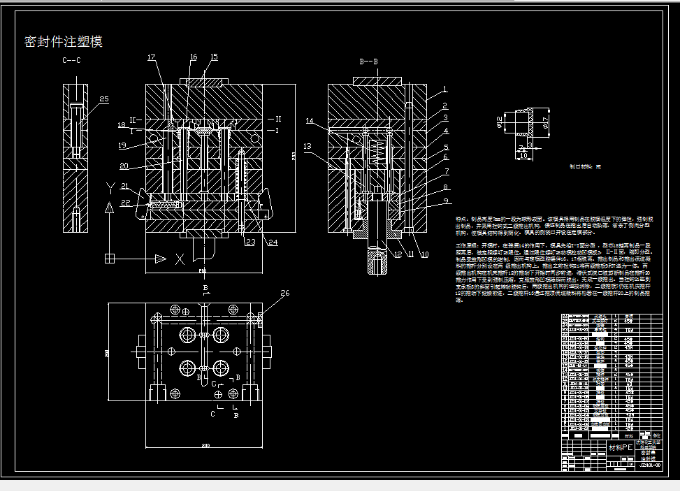 关键词: 点浇口 ; 密封件 ; 注射模 ; 单分型面;