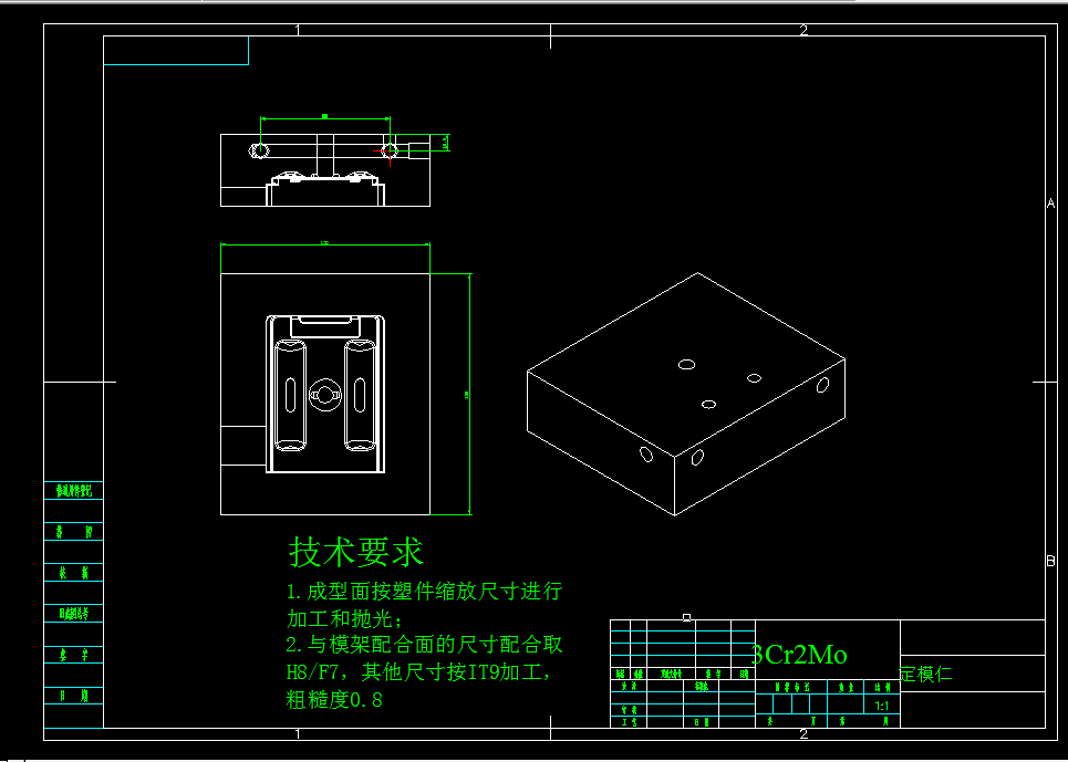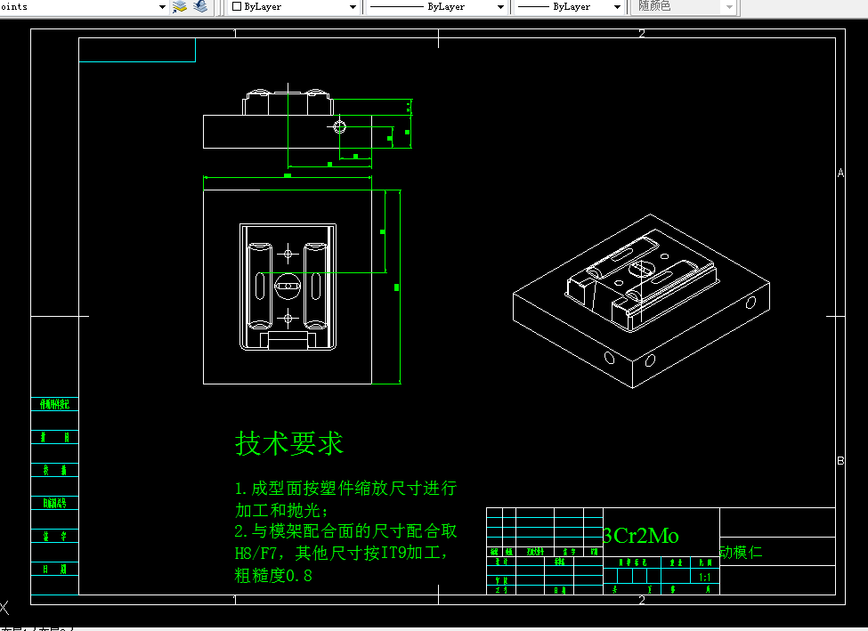 本设计以充电电池座的注塑模具设计为主要内容,详细介绍了注塑模的设计的一般流程,注塑模具的设计一般包含:注塑机的选用,模具布局的确定,浇注系统的设计,抽芯机构的设计,模架的选取,冷却系统的设计以及注塑机参数的校核。