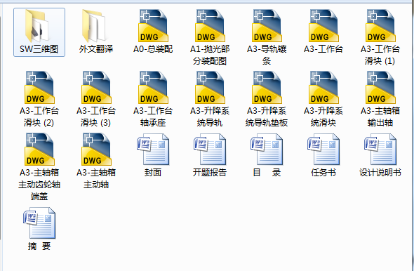 动力部分由电动机、减速器,输入轴为主,其余部分参考外购件的参数加以整合设计。而重点设计的是衣架抛光机抛光部分。在计算过程中,轴的设计及丝杆的选用是重点。首先提出抛光机的工作原理,进行结构设计;然后确定一些原始数据,计算出各个轴及丝杆的转速、功率、转矩。最后绘制木制衣架抛光机的装配图及典型零件的零件图,对木制衣架抛光机的关键参数进行计算和校核。
