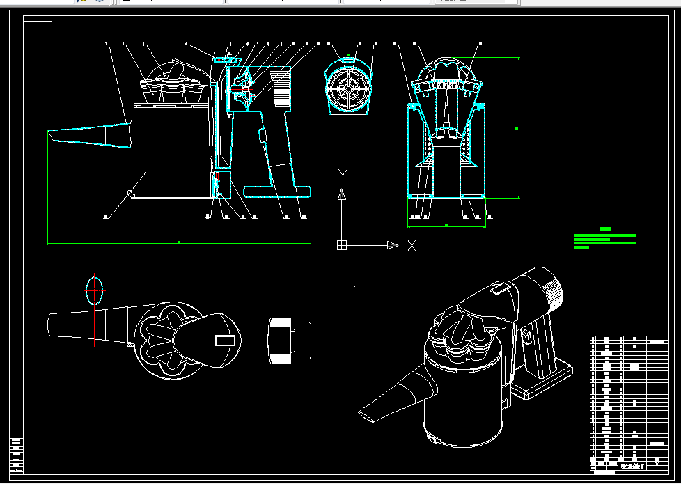 本课题根据三维数字化建模思想,通过采用SolidWorks软件进行计算机辅助设计,设计过程中经过草绘、粗模、再计算,将所得的数据进行了多次三维建模,最后利用模型进行干涉检查、模拟装配和流体分析等处理,最终得出吸尘器的整体结构模型。文章中采用工业旋风分离除尘技术对吸尘器集尘部分进行整体设计。其涉及到结构设计、三维造型、空气动力学等内容。本课题设计的核心部分包括:集尘分离装置的设计、旋风分离器相关尺寸设计、风叶轮结构设计。