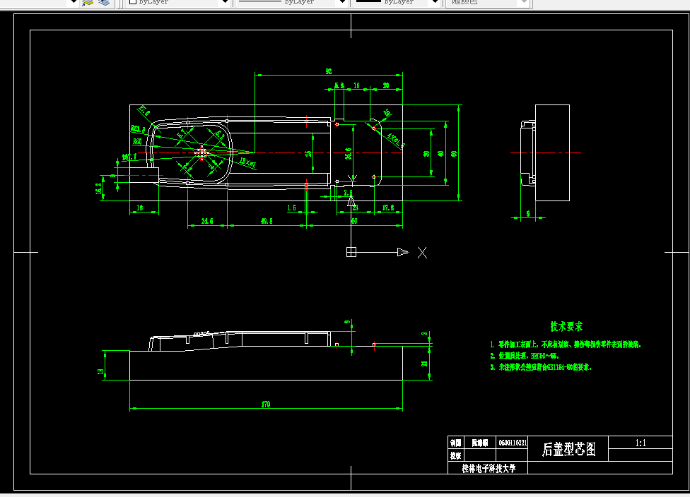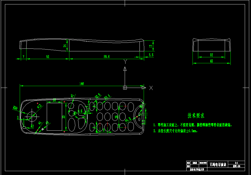 关键词:AUTOCAD;塑料注射模具;无绳电话外壳;注塑机