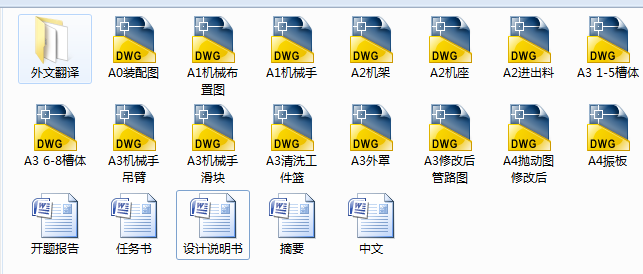 本设备主要由控制系统、清洗系统、输送系统、烘干系统、泵循环过滤系统、排风系统、清洗通道等组成。本设备大幅度提高了汽车空调集液器铝件的清洁度;使用水基清洁液,完全到达了国家环保排放标准,改善了工人的工作条件;采用PLC自动控制实现了超声波清洗的自动化过程,降低工人的劳动强度,提高了生产效率,同时保证设备的运行的可靠性和安全性;采用触摸屏控制系统,操作方便易懂,人机交换界面独特新颖,人机交换信息更加完善.通过在工厂的实习,结合工厂的生产条件,对设备不断改进和完善.完成了对超声波清洗设备的机械手设计,清洗槽体的设计及电气设备的设计.
