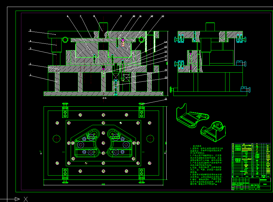 以零件的生产技术要求为标准,设计了落料冲孔复合模具、弯曲模及冲孔模的单工序模。冷冲压加工由三要素板料、设备和模具所构成,此三要素是冲压所必要的硬件条件,再通过有机地协调、进行合理的工艺性设计和计算以有效的组织管理。在设计过程中,对零件加工工艺和模具设计的分析结果非常重要,还有模具是为了更经济的生产产品的,在设计过程中要考虑设计的模具结构是否可用,成本不宜过高,操作简单,要让工人更容易上手。