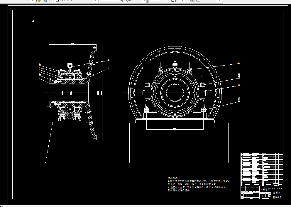 本课题主要是对K2112.00溢流型球磨机进行结构设计,根据K2112.00溢流型球磨机的技术要求,合理地确定设计方案,并对其机械结构进行设计,包括进料部、传动部、筒体等,绘制球磨机的装配图,主要部分的部件图以及零件图。本课题主要是对球磨机的轴承部,传动部和筒体部进行优化设计。了解了球磨机的工作原理和载荷分布的情况,就可简化轴承部的结构,而使用通用件,可以降低球磨机的成本,满足企业的需求。筒体部的优化:改进筒体材料、合理布置筒体衬板、合理选择衬板材料和类型、优化进出料装置等,筒体部的改进可减少进料端与出料端矿浆的泄露,提高球磨机的运行效率,延长使用寿命,降低能耗。通过查阅资料可知,所设计的溢流型球磨机的直径D=2100mm,长度L=3600mm,经过计算可得到球磨机的转速、功率、装球量等自身参数,进而对其传动部进行设计,选择合适的电动机、减速器、相对应的联轴器等,且合理地设计球磨机的齿轮传动结构,并进行校核。可以降低成本,减少能耗,提高经济效益。