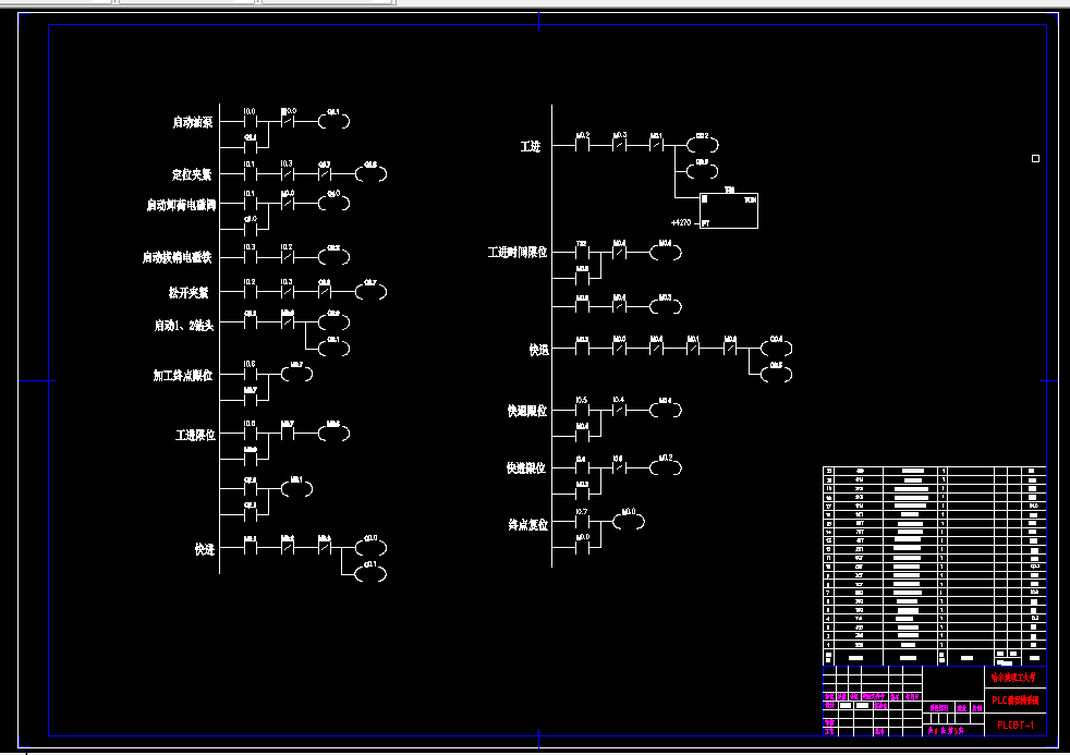 本文第二部分是液压系统的电气控制部分,是应用PLC实现的,PLC和传统的继电器——接触器控制系统比较,具有可靠性高,逻辑功能强,体积小,可在线修改控制程序,具有远程通信联网功能,易于与计算机接口,能对模拟量进行控制,具备高速计数与位控等高性能模块等优异性能。PLC选用了德国西门子S7-200系列CPU224型,同时扩展了一个输出模块EM222。