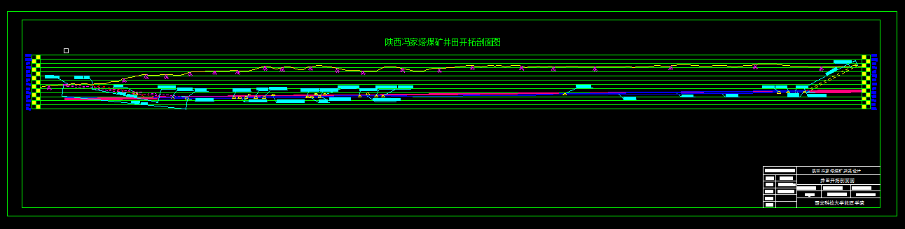 设计部分共包括7章:(1)矿井地质概况;(2)井田开拓;(3)大巷运输及设备;(4)采区布置及装备;(5)井通风与安全;(6)矿井提升、运输、排水、压缩空气设备选型;(7)环境保护。