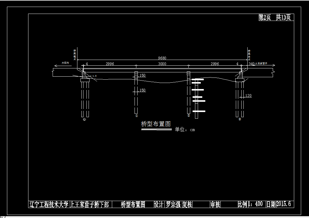 本次设计题目为《上王家营子桥下部结构设计》,桥梁全长96.8m,桥孔布置为3×30m,该桥为预应力简支梁桥,上部结构采用预应力混凝土T型梁桥;下部结构采用桩柱式桥墩,肋式埋置式桥台。本次设计采用单向两车道,上下行分离,单向桥面净宽:2×3.5m(行车道)+2.5m(紧急停车道)+0.5m×2(防撞墙)+0.75m(左侧硬路肩)=11.25m;公路-Ⅰ级荷载,Ⅱ类环境,设计安全等级:二级。