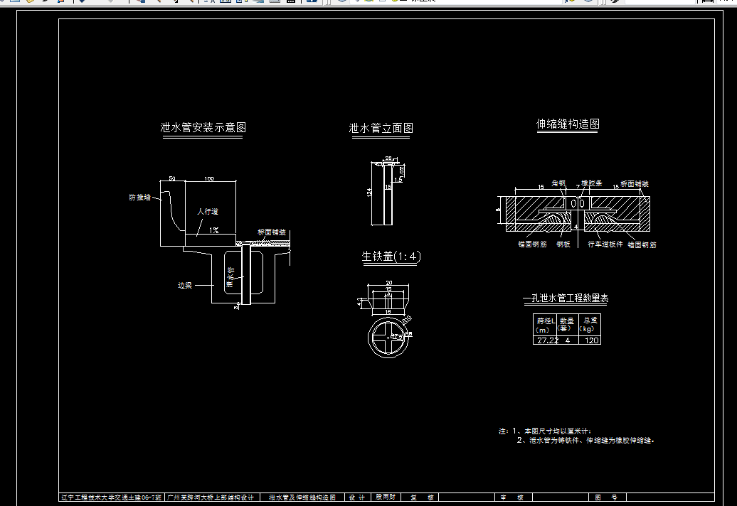 本设计的题目为广州某跨河大桥上部结构设计。该设计是综合了大学四年中所学的专业知识理论,可以增进我们对所学的独立的专业知识之间的联系。本设计为广州某跨河大桥,全桥长120米,分4跨,跨径30米,为钢筋混凝土预应力简支箱型梁桥,采用五片箱梁,为一类预应力混凝土构件。