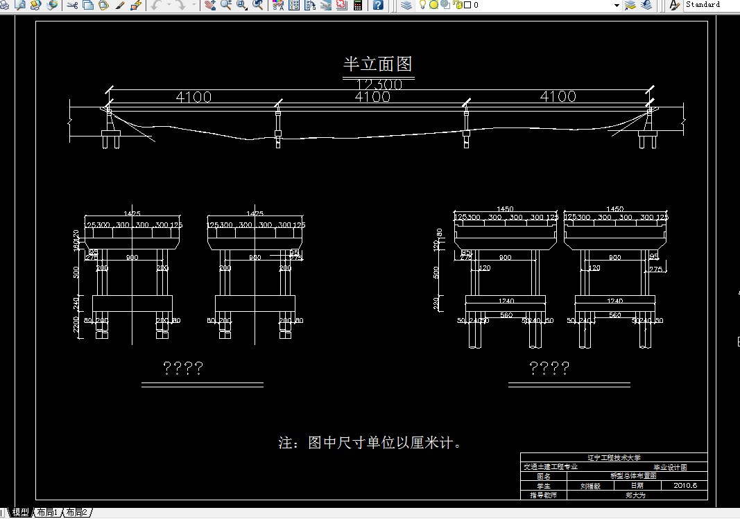 本设计是渠江二桥下部结构设计,设计的车速V=120Km/h,该桥全长123m,采用3跨的预应力混凝土箱梁桥。桥梁的下部结构是桥梁跨跃能力的基础,它的正常使用与否决定着交通的畅通与车辆的安全与否。所以,桥梁的下部结构设计就尤为重要。