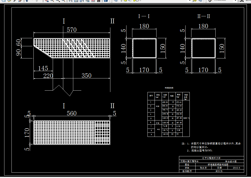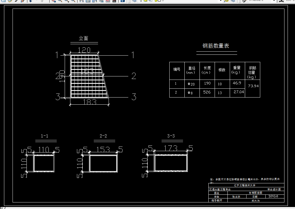 本设计的题目为唐山市迁西一级公路三抚公路大桥下部结构设计。该设计是在充分考虑了大桥实际所处的自然地质环境并且综合了大学四年中所学的专业知识理论的情况下得出的。设计内容包括设计资料收集、桥型选择以及方案比选、支座、桥墩、桥台的尺寸拟定、支座设计及验算、墩柱及盖梁的剪力、弯矩的计算及配筋设计、桥台的设计与计算等,具体计算方法涉及杠杆法、偏心受压法等。