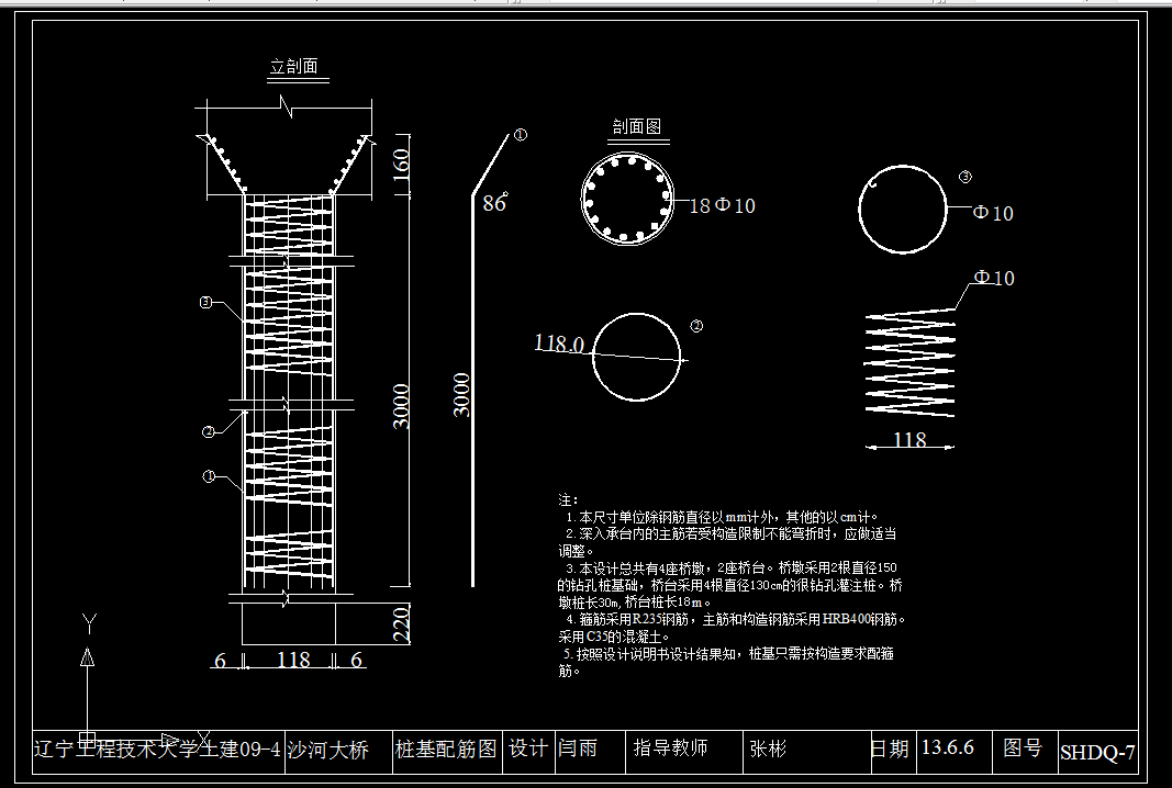 在桥梁设计与计算中采用了杠杆法、偏心压力法、m法等计算方法,并参照了有关规范与规定进行设计与校核。