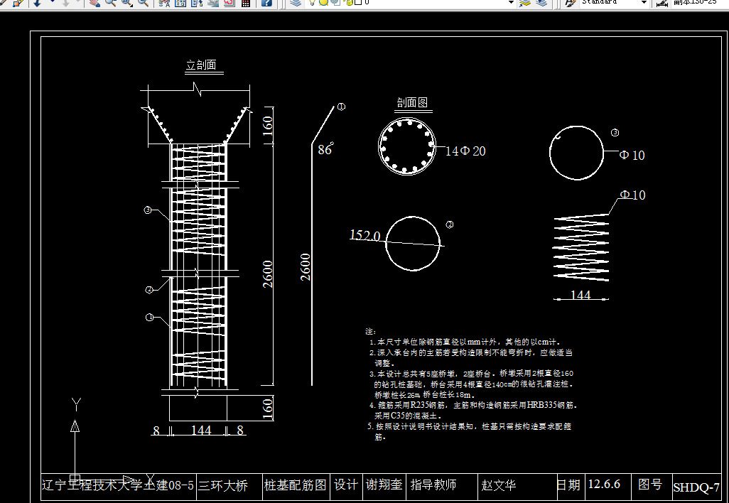 在桥梁设计与计算中采用了杠杆法、偏心压力法、m法等计算方法,并参照了有关规范与规定进行设计与校核。